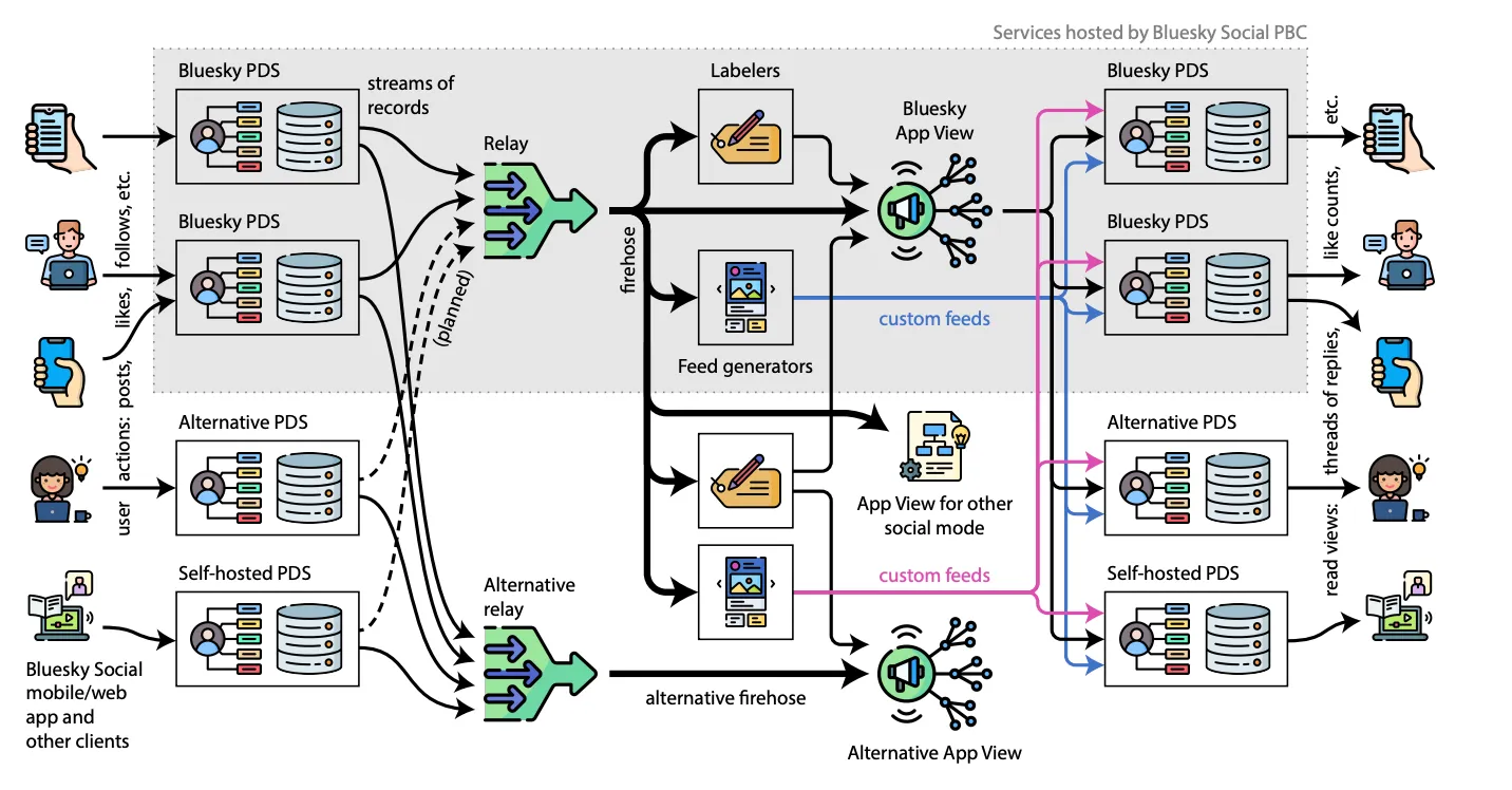 Архітектура Bluesky. Джерело зображення: Bluesky та AT Protocol