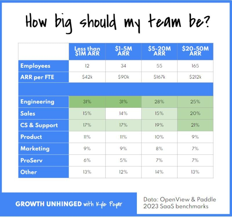 Важко сказати точно, але ось ще одна думка для роздумів. Дослідження понад 700 SaaS-компаній показує, що інженерний відділ завжди є найбільшим.