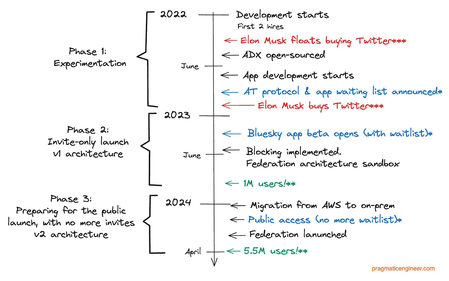 Чудова стаття-підсумок нашого обговорення — про те, як створювався Bluesky та з якими викликами вони стикнулися під час планування, розробки та запуску. Радимо ознайомитися, щоб повністю зрозуміти велику відповідальність за процес розробки та результат.